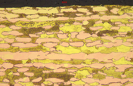 铅黄铜为以铅为主要添加元素的复杂黄铜,为Cu、Pb、Al、Zn4种有色金属以一定配比结合而成。铅极少固溶于铜锌合金,在合金中以独立相存在,呈游离质点分布在晶界和晶内,既有润滑作用,又能使切屑成崩碎状,可提高黄铜的切削性和耐磨性。