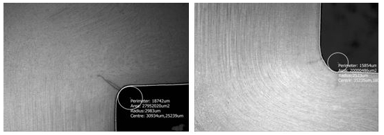 M36螺栓圆角处的纵向剖面上变形流线完整、顺畅,圆角处裂纹垂直流线扩展,尾端尖细,出现裂纹位置的圆角半径约为3mm,大于技术要求的下限(2mm),见图14-31。